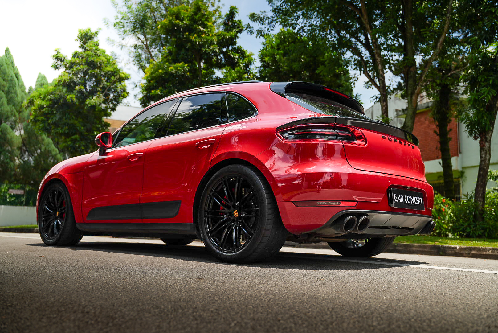 Moonroof, keyless entry, steering wheel control, dual memory seat package, Macan Turbo Factory Rims, Electronic Tow Hook, GTS approved quad exhaust